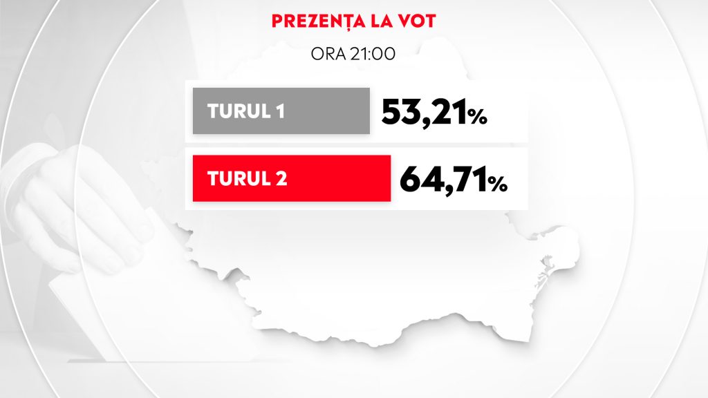 UPDATE 21:27 – PREZENȚA LA VOT / TURUL 1 VERSUS TURUL 2