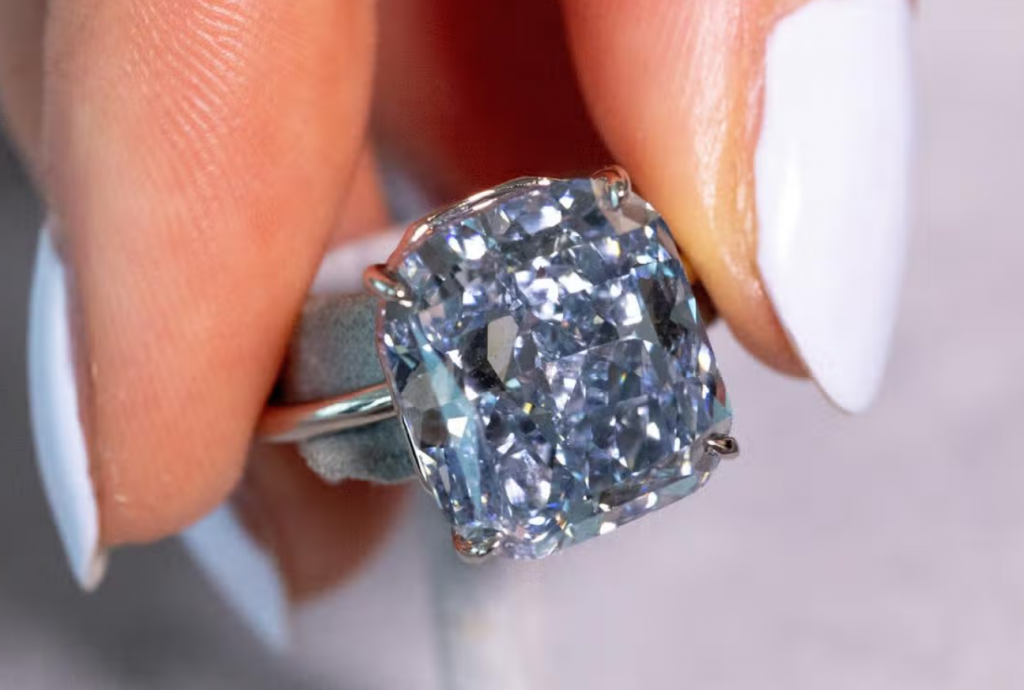 Un diamant albastru rar, denumit „Diamantul Albastru Mediteranean”, va fi scos la licitație la Geneva pe 13 mai 2025, în cadrul vânzării High Jewelry organizate de casa Sotheby’s.