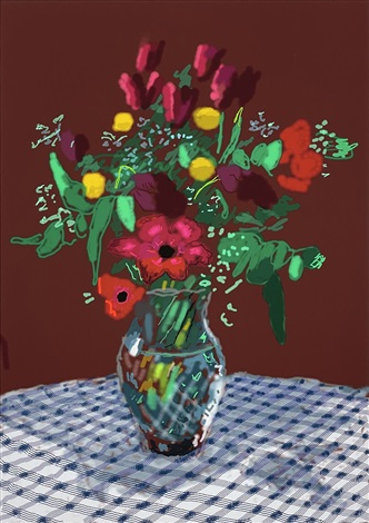 Unul dintre punctele forte ale licitației îl reprezintă operele digitale create de Hockney pe iPad, cum ar fi „16th February, 2021, More Flowers in a Glass Vase”. Este o lucrare care surprinde un aranjament floral.