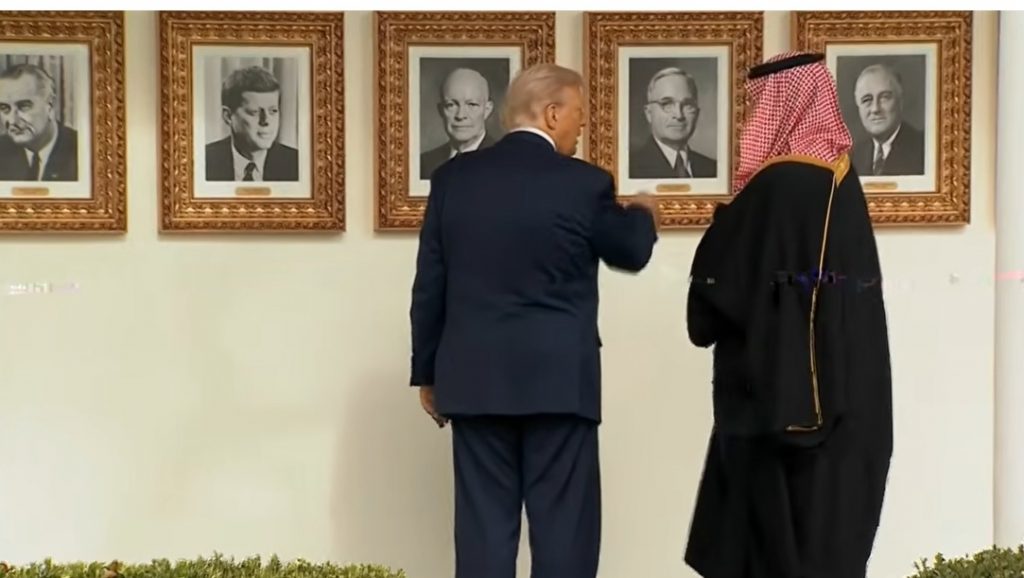 Trump și Mohammed bin Salman au o discuție privată la Casa Albă. Președintele american îi arată Prințului Moștenitor tablourile prezidențiale.