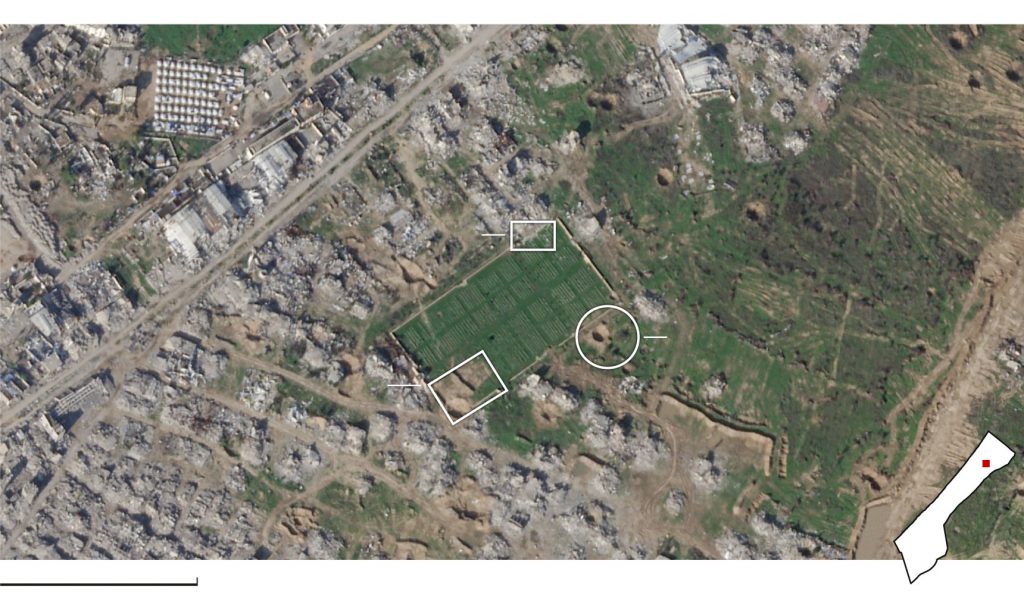 După ce i s-au arătat imagini din satelit ale cimitirului, Forțele de Apărare Israeliene au declarat că au fost nevoite să ia măsuri defensive în toiul luptei.
