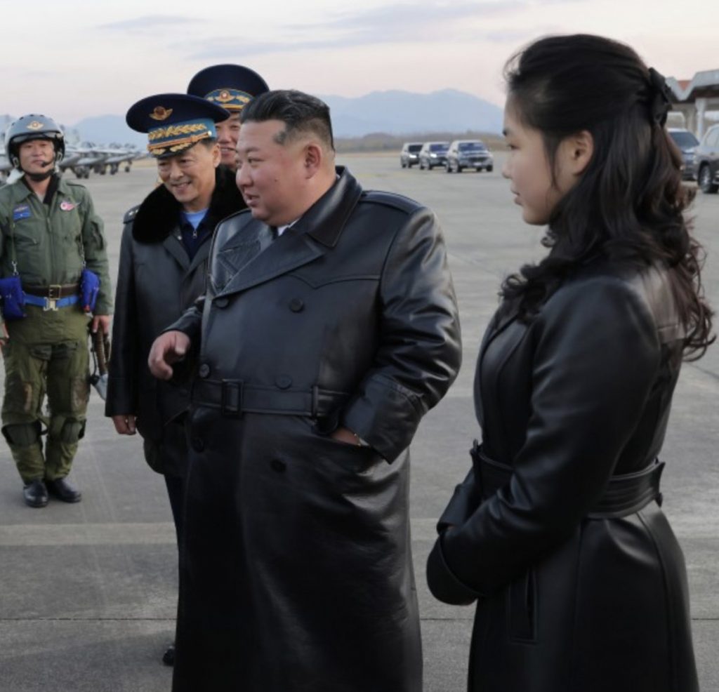 Îmbrăcați în paltoane lungi de piele, Kim și fiica sa au asistat la un spectacol aerian pentru a marca aniversarea și au vizitat o expoziție de aeronave, cum ar fi un avion de avertizare timpurie aeriană pe care Coreea de Nord l-a prezentat la începutul acestui an, au arătat fotografiile presei de stat.