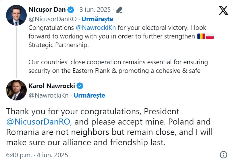 - Nicușor Dan și Karol Nawrocki s-au felicitat pe X pentru victoria în alegerile prezidențiale.