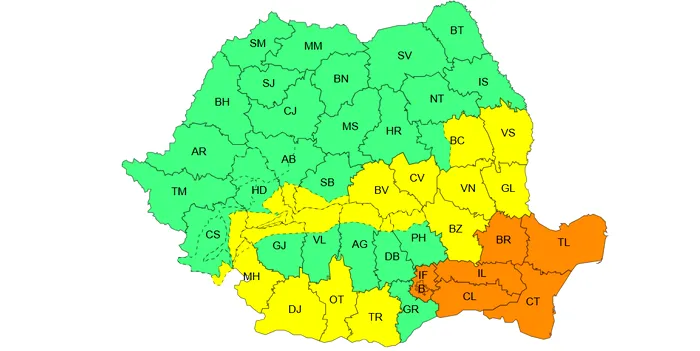 Meteorologii anunță că un Cod galben de ninsori viscolite și strat de zăpadă este în vigoare între orele 10:00 și 23:00 în jumătatea sudică a Moldovei, sud-estul Transilvaniei, nord-estul Munteniei, precum și în Carpații Meridionali și de Curbură, unde vizibilitatea scade sub 100 de metri. Vântul atinge viteze de 50 – 70 km/h, iar în zona montană înaltă rafalele ajung la 70 – 90 km/h.