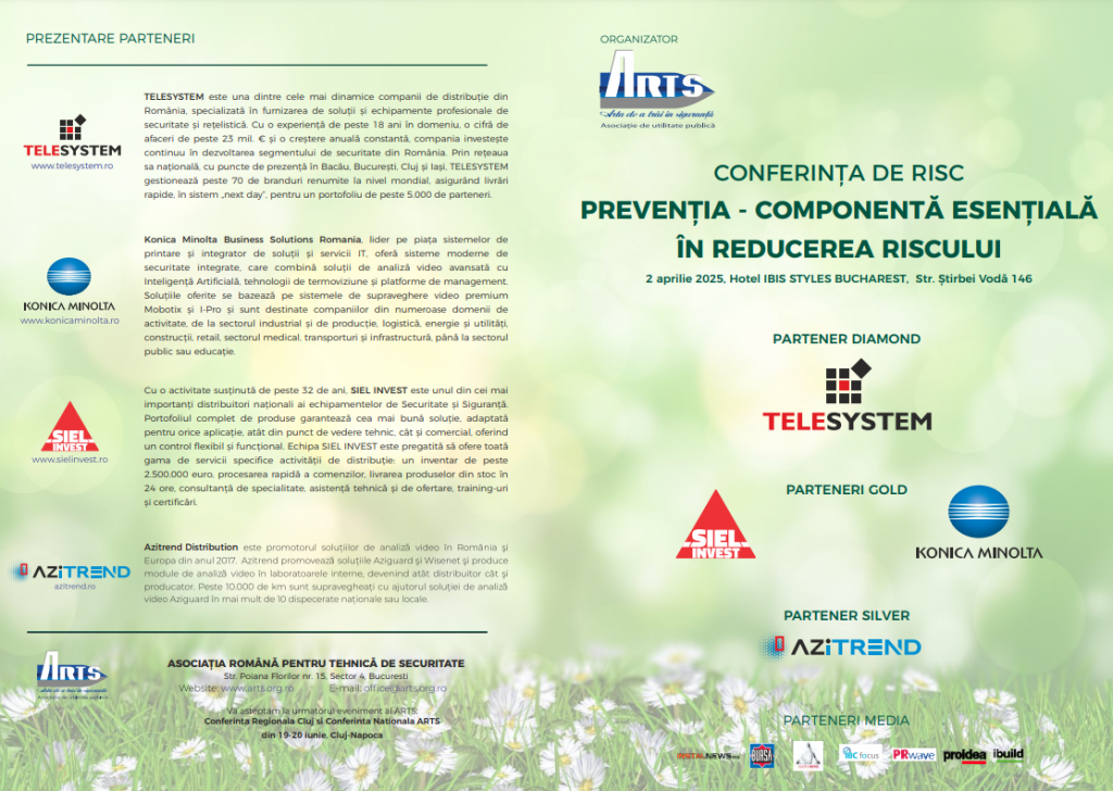 Reprezentanții ARTS au ținut astăzi, 2 aprilie 2025, o conferință pe tema securității cibernetice, intitulată „PREVENȚIA – COMPONENTA ESENȚIALĂ ÎN REDUCEREA RISCULUI”. Evenimentul a avut loc la Hotel Ibis Styles Bucharest, pe Str. Știrbei Vodă 146.